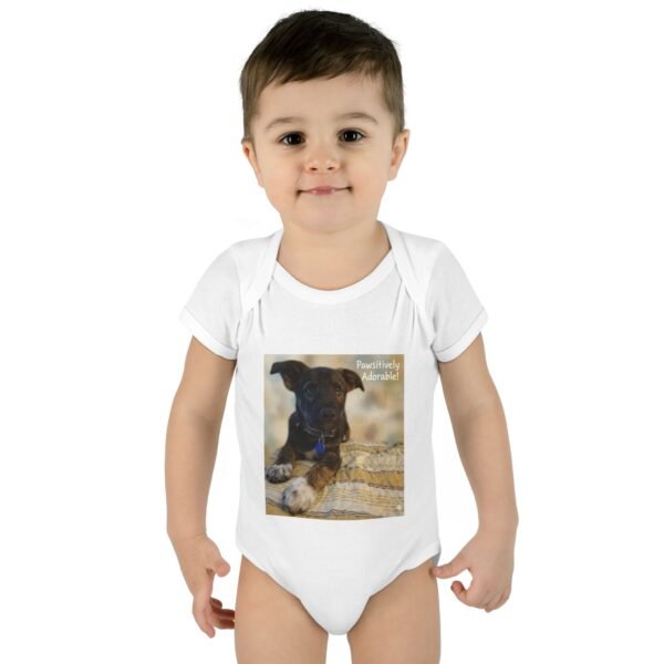 Baby Bodysuit with Adorable Puppy Photo – “Pawsitively Adorable” Infant Onesie
