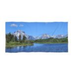 Mountain Lake Landscape Beach Towel | Scenic Nature Print