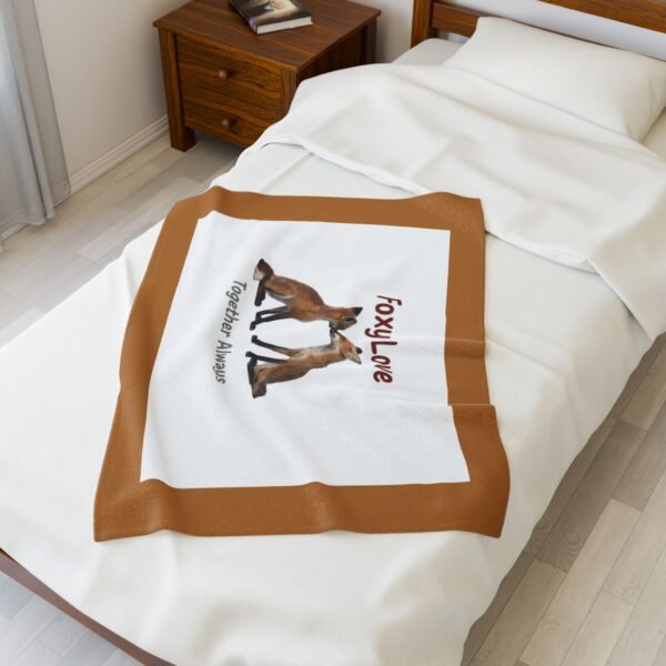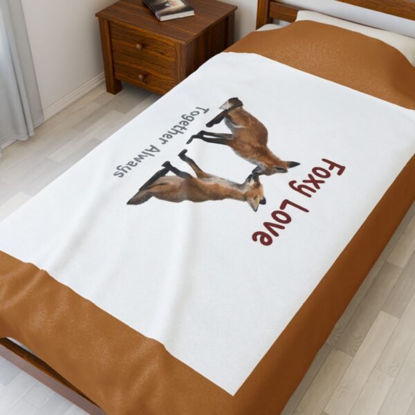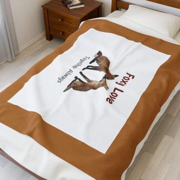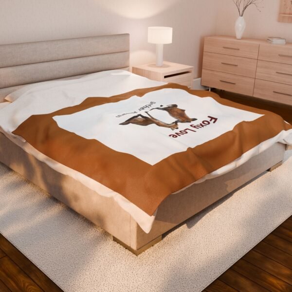 Velveteen Plush Blanket — Sitting Fox “Foxy Love” Pattern, Soft Cozy Throw for Lovers, Nursery & Gifts